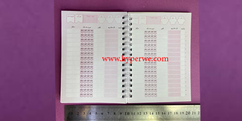 دفتر نوبت دهی مخصوص خدمات ناخن سایز کوچک. داخل دفتر شامل ساعت ، نام مشتری، تلفن، نوع خدمات مورد نظر و مبلغ می باشد. طرح دفتر با توجه به موجودی انبار ارسال می گردد.
